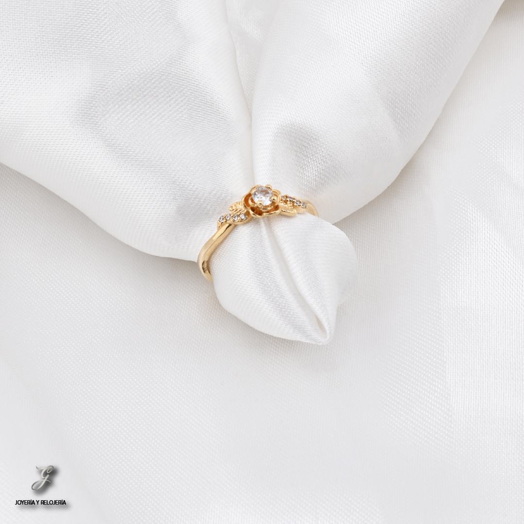 ¡La naturaleza y la elegancia se unen en una joya! 🌼 El Anillo Flor de Luz es una pieza deslumbrante que combina la belleza floral con el brillo de sus piedras. Elaborado en oro 18K, Ley 730, este anillo cuenta con un circón central blanco y redondo, rodeado por un diseño que simula los delicados pétalos de una rosa. A sus lados, pequeños circones complementan la pieza, haciéndola perfecta como anillo de compromiso o para cualquier ocasión especial. ✨