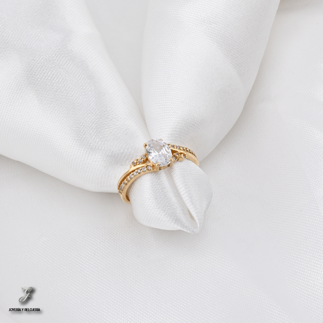 ¡El símbolo perfecto para tu historia de amor! 💍 El Anillo Amor Eterno es una joya clásica y deslumbrante, diseñada para ser la pieza ideal para un compromiso. Elaborado en oro 18K, Ley 730, este anillo presenta un circón blanco de corte ovalado en el centro, destacando su elegancia. La banda, adornada con pequeños circones redondos a los lados, añade un brillo adicional que captura la luz con cada movimiento, creando una pieza realmente inolvidable.
