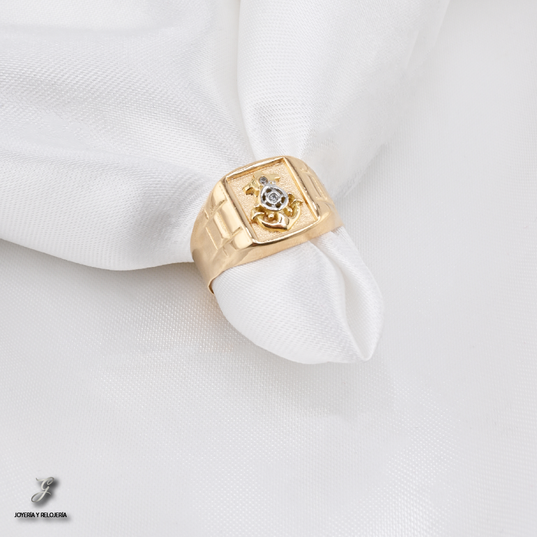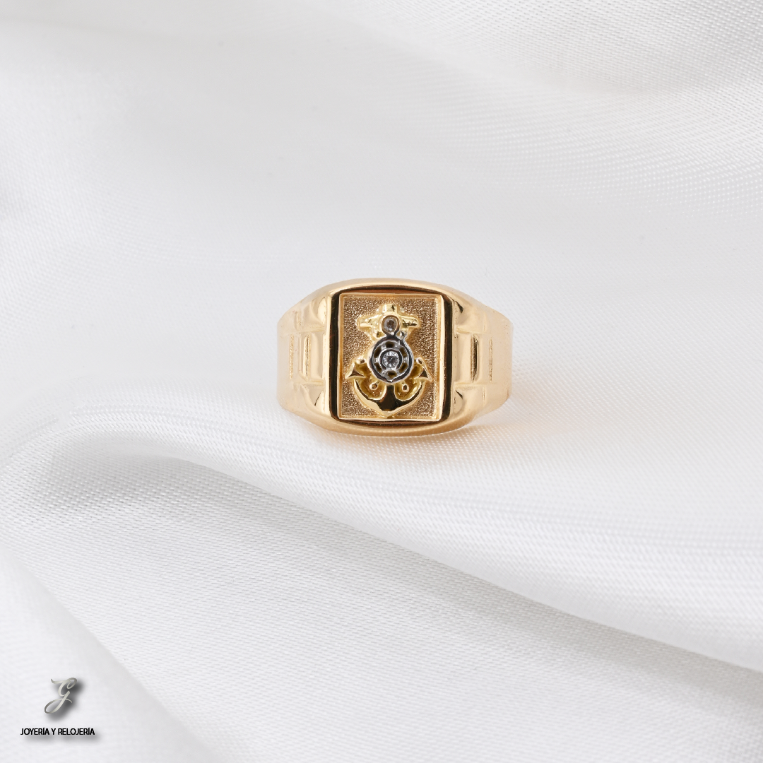 ¡El ancla que te recuerda que siempre habrá un puerto seguro! ⚓ El Anillo Hombre Firmeza es una pieza que simboliza la estabilidad, la fuerza y la esperanza. Elaborado en oro 18K bicolor (amarillo y blanco), Ley 730, este anillo de sello para caballero presenta un elegante motivo de ancla, con un pequeño circón blanco de corte redondo que añade un toque de brillo. Su diseño es perfecto para el hombre que valora la tradición y un estilo distintivo en sus accesorios.
