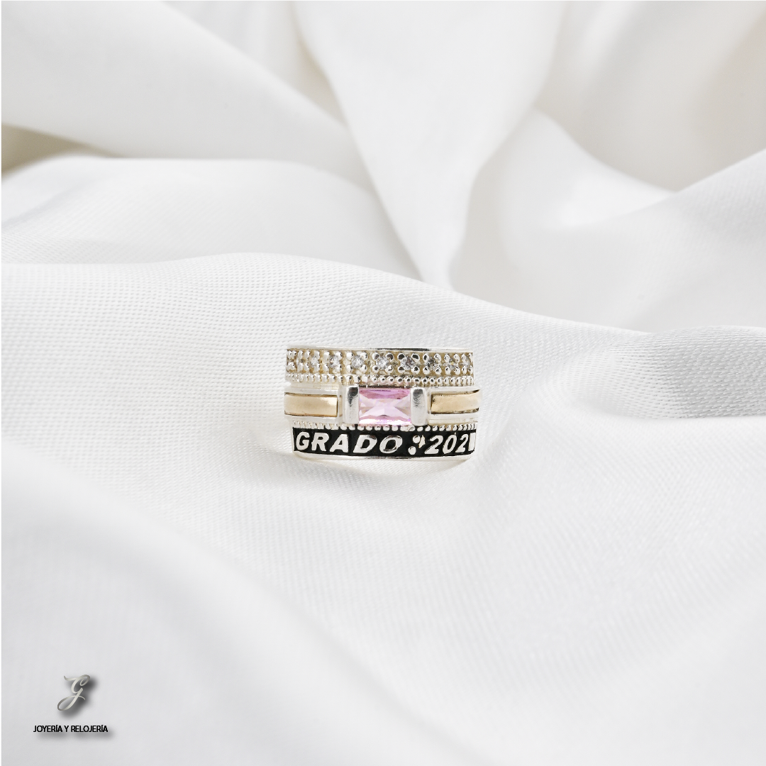 Este anillo no es solo un símbolo, sino un lienzo para tu historia. Lo personalizamos con la marcación del año de tu graduación, tus iniciales o el nombre de tu carrera en la parte frontal. Además, si el espacio lo permite, podemos realizar una tercera marcación especial en la parte interna del aro, haciendo de tu anillo una pieza verdaderamente única y personal.
