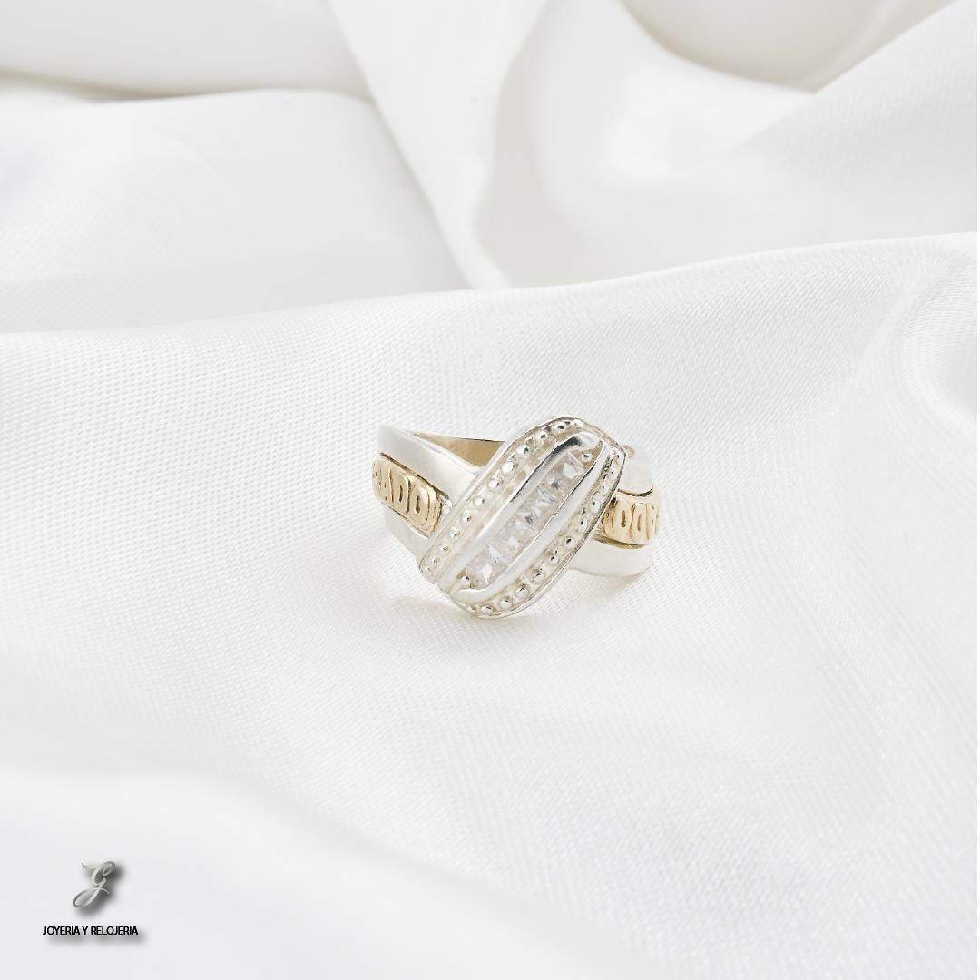 ¡Un distintivo de tu logro académico con estilo y distinción! 🎓 Este elegante Anillo de Grado MONTREAL 17 es una joya excepcional que combina la pureza de la Plata Ley 925 con el realce de una lámina de Oro de 18 Kilates. Su diseño presenta una imponente piedra central de Circon Suizo en corte marquesa, que simboliza la excelencia y la fuerza de tu camino recorrido. Las hileras de pequeños circones a los lados añaden un destello de sofisticación. El grabado "GRADO" y el año se realzan con elegancia en los costados.