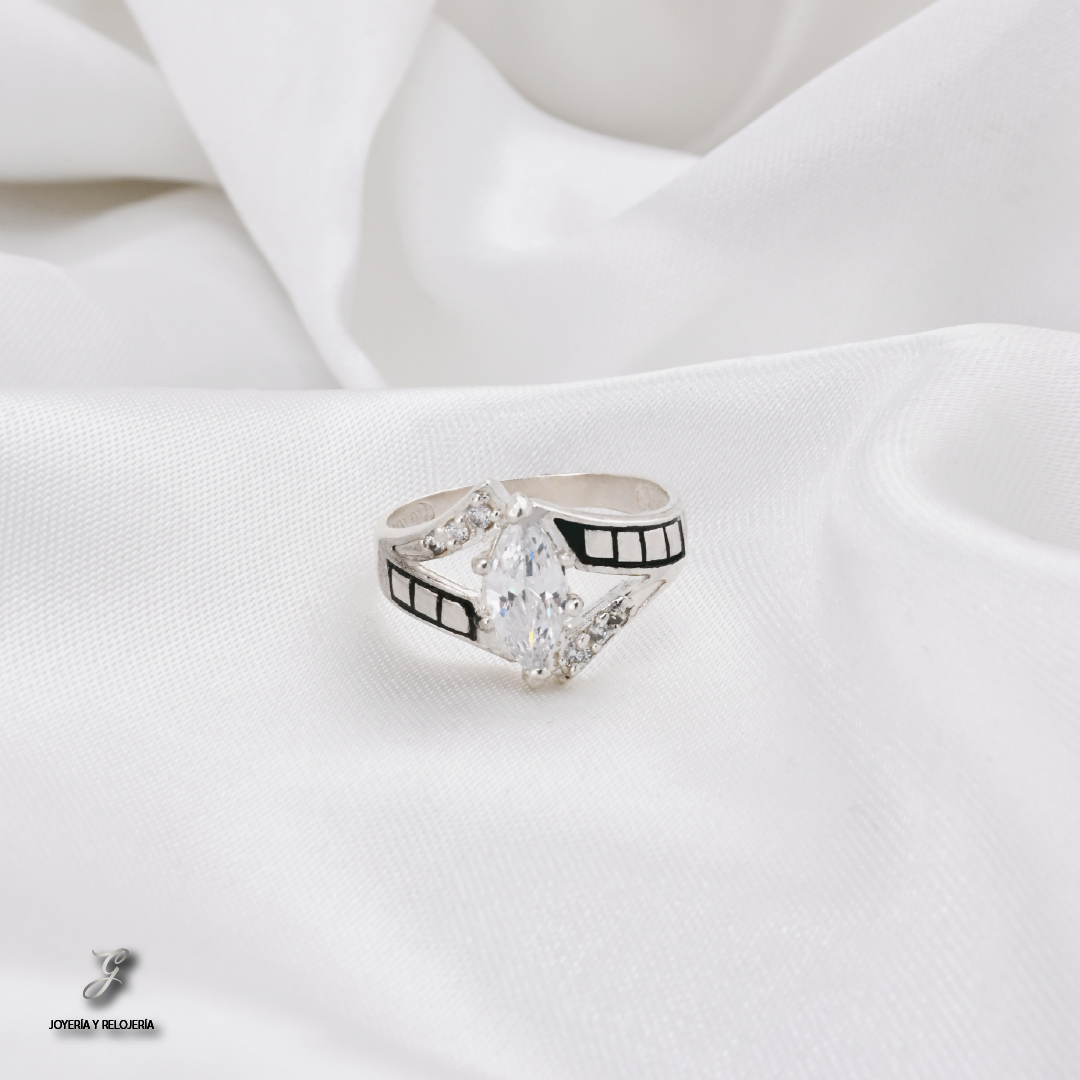 Piedras: Circones Suizos, con una piedra central en corte marquesa.