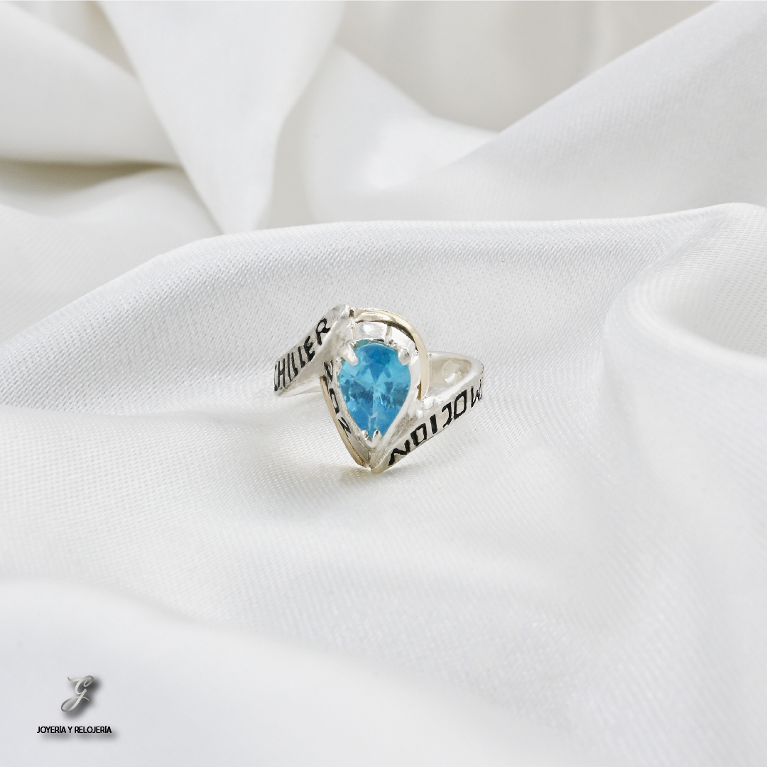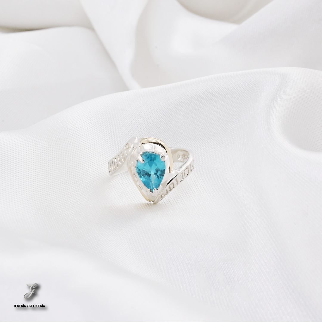 ¡Un distintivo de tu logro académico con estilo y distinción! 🎓 Este elegante Anillo de Grado LISBOA 09 es una joya excepcional que combina la pureza de la Plata Ley 925 con el realce de una lámina de Oro de 18 Kilates. Su diseño presenta una imponente piedra central de Circon Suizo en corte de pera, que simboliza la excelencia y la fuerza de tu camino recorrido. Los grabados personalizados a los lados añaden un toque único de sofisticación.