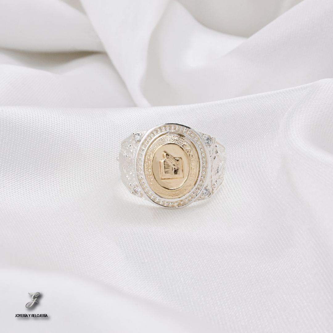 ¡Un diseño moderno y minimalista para conmemorar tu logro! 🎓 Este distinguido Anillo de Grado OSAKA 13 es una joya que destaca por su diseño limpio y su fuerte contraste. Combina la pureza de la Plata Ley 925 con el realce de una lámina de Oro de 18 Kilates. Su diseño presenta una imponente placa de esmalte negro con la palabra "GRADO" en relieve, marcando de forma clara tu triunfo. A un costado de la placa, un pequeño Circon Suizo en corte redondo añade un toque de brillo sutil y elegante, completando un estilo que es a la vez contemporáneo y atemporal.