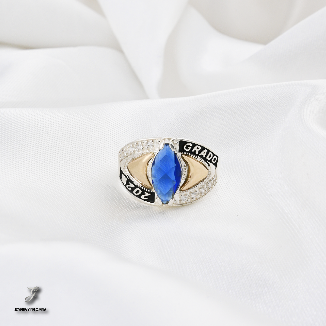 Este anillo es mucho más que un accesorio; es un recuerdo personal de tu esfuerzo y triunfo. Ofrecemos la posibilidad de personalizarlo con la marcación del año de tu graduación o si lo prefieres, tus iniciales o el nombre de tu carrera en la parte frontal. Además, si el espacio lo permite, podemos realizar una tercera marcación especial en la parte interna del aro, haciendo de tu anillo una pieza verdaderamente única y significativa.
