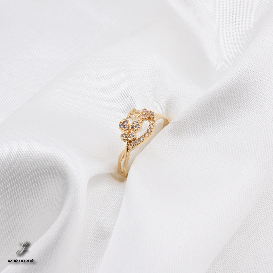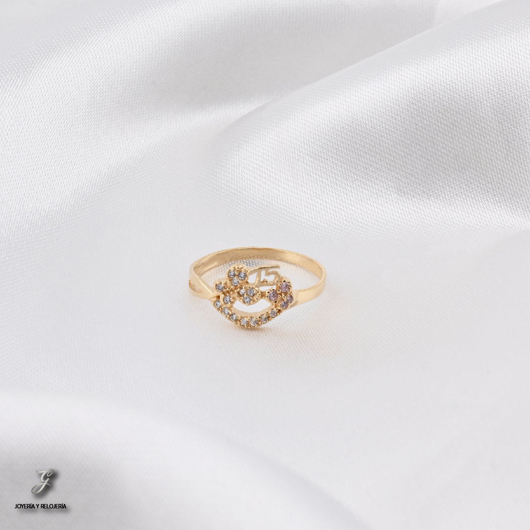 ¡Celebra tu transformación con esta joya llena de simbolismo! ✨ El Anillo Quinceañera Dos Mundos es una pieza que representa el paso de la niñez a la juventud. Elaborado en oro 18K, Ley 730, este delicado anillo presenta dos mariposas adornadas con brillantes circones rosados y blancos de corte redondo, que se unen en un corazón donde se encuentra el número "15". Es el regalo ideal para conmemorar este hito y un recordatorio de la belleza del cambio.