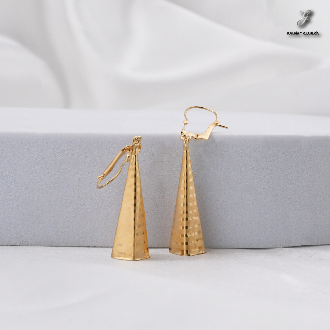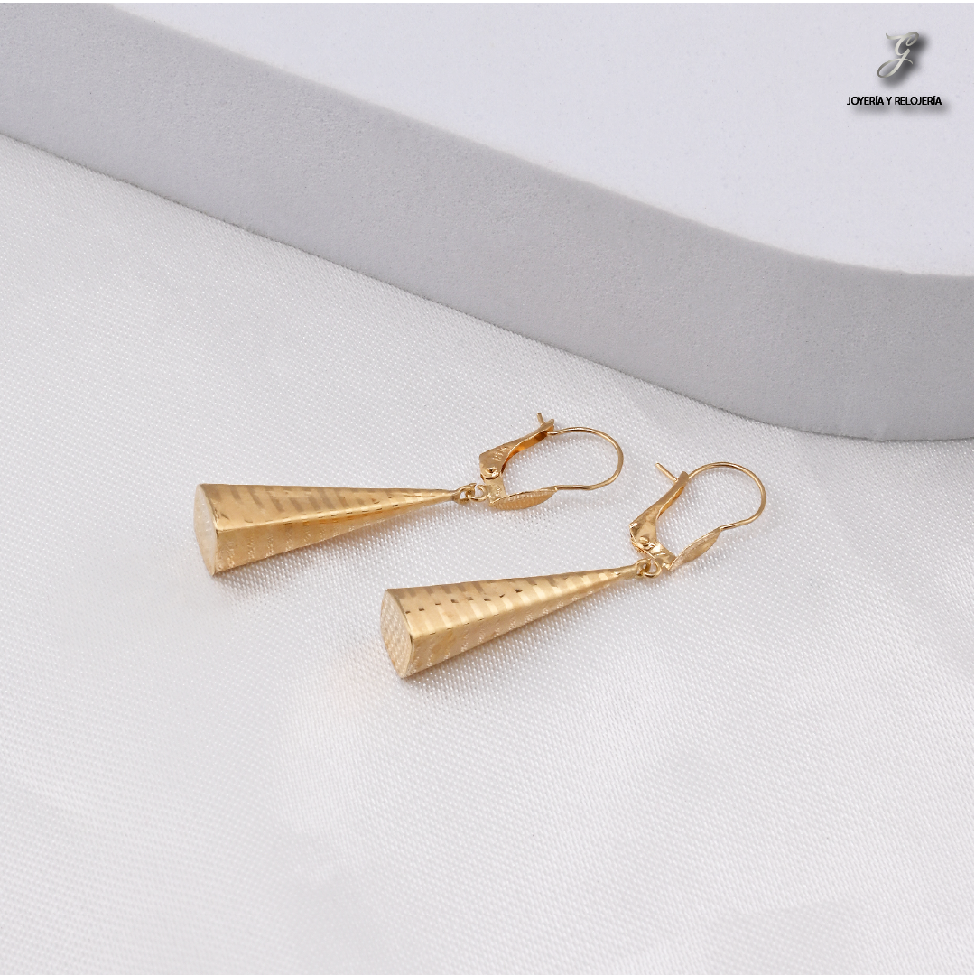 ¡Un diseño audaz y moderno que atraerá todas las miradas! ✨ Estos Aretes Cono Martillado tienen una forma cónica única y un acabado martillado que les da un brillo y textura excepcionales. A diferencia del gancho de anzuelo, estos aretes cuentan con un gancho de palanca que se cierra de forma segura, brindando total confianza al usarlos. Su largo y ligereza los hacen cómodos para usar todo el día.