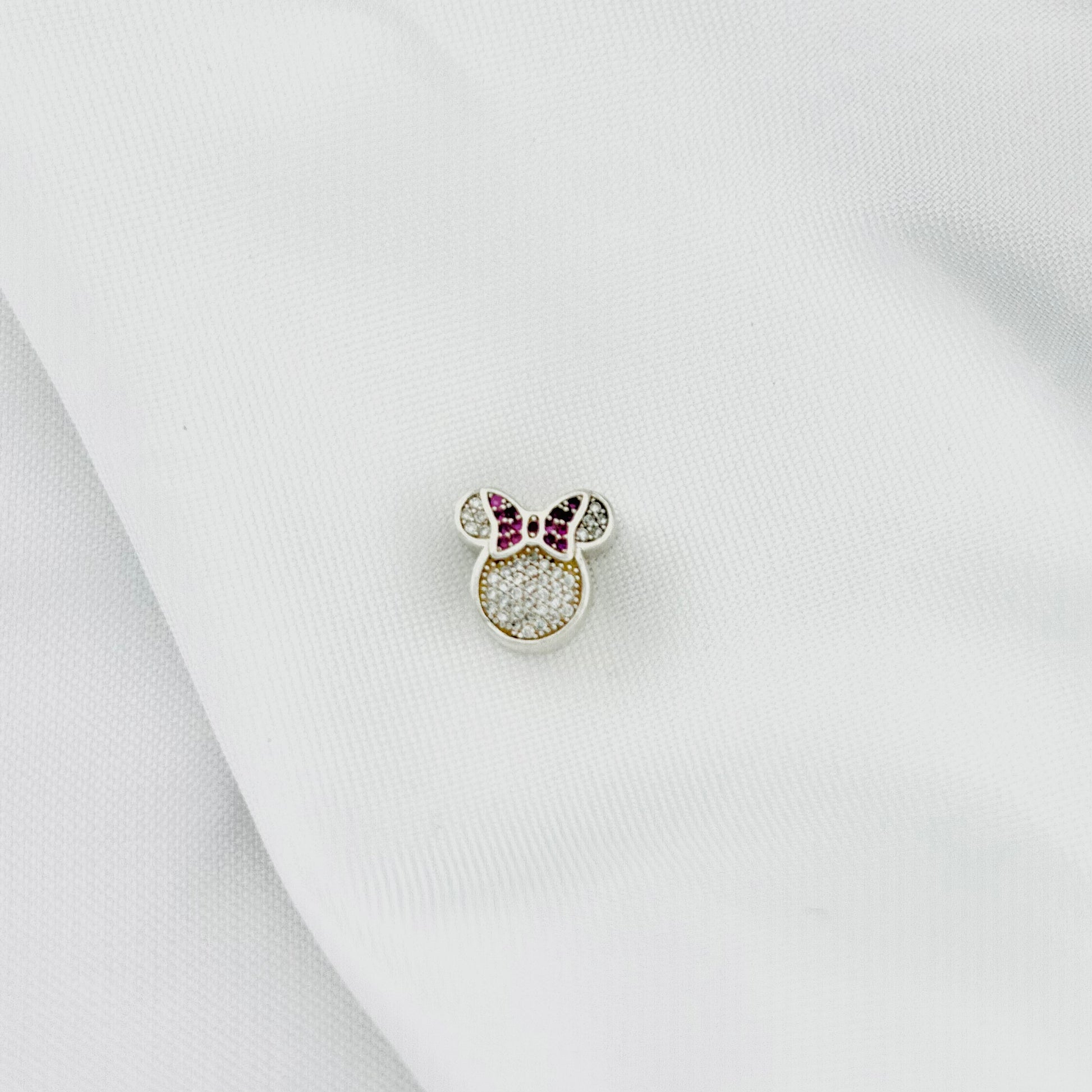 ¡Celebra el encanto de Disney con nuestro Broche Silueta Minnie Mouse! Este broche de plata, diseñado para funcionar como clip o separador, presenta la icónica silueta de Minnie Mouse. Las orejas y el rostro están adornados con brillantes piedras transparentes, mientras que el lazo está cubierto de piedras rojas, creando un diseño elegante y lleno de color. Es el accesorio perfecto para los fans de Disney que buscan un toque de magia y sofisticación.