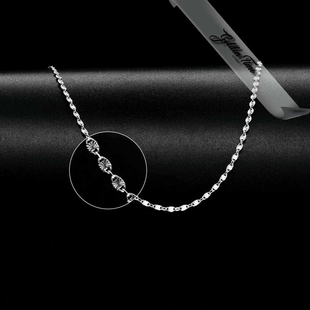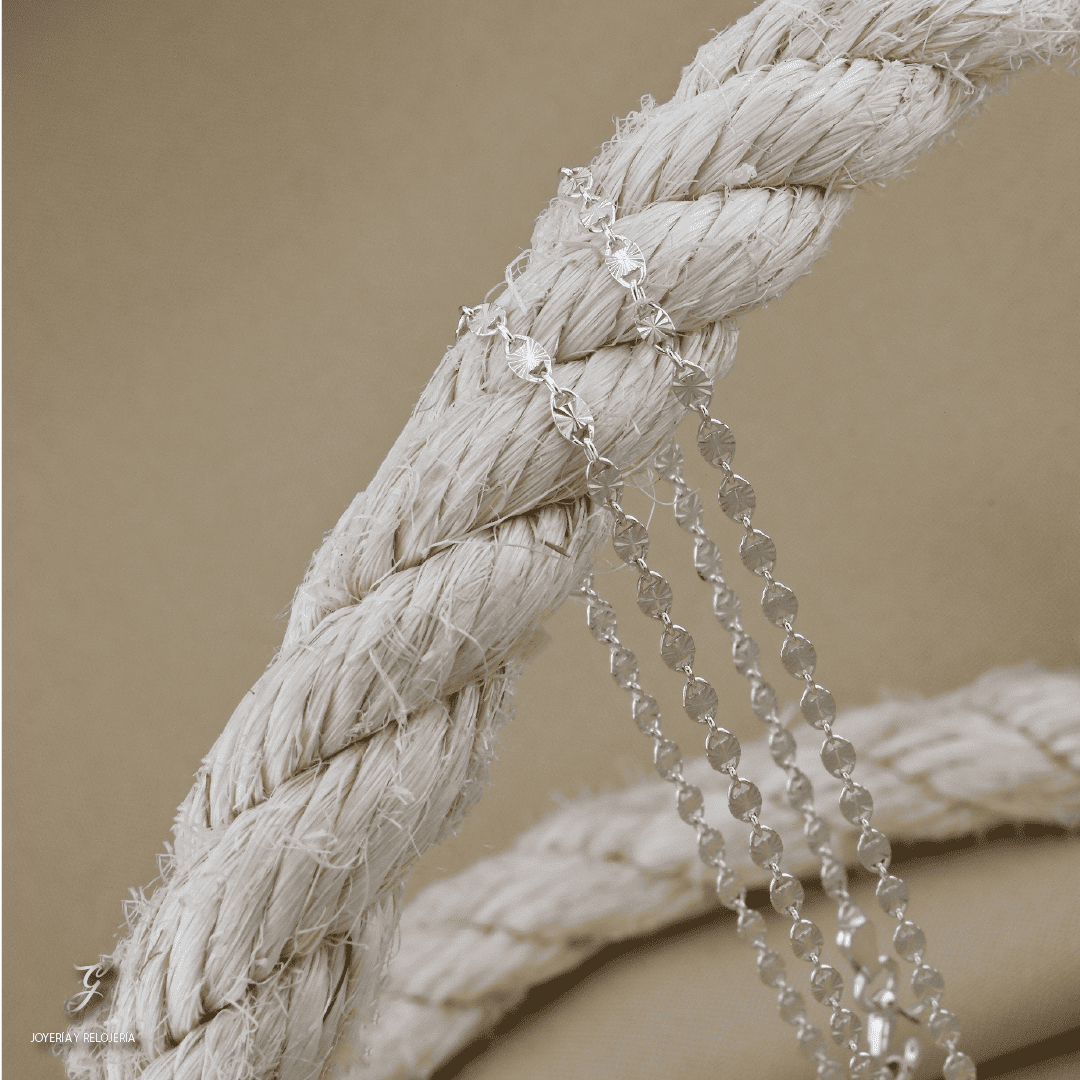 Diseño moderno y llamativo, esta cadena está elaborada en plata italiana 925, reconocida por su pureza, brillo y durabilidad. El tejido Confeti 1+1 Star se distingue por su patrón decorativo único, que alterna un eslabón redondo con uno en forma de estrella, creando un efecto visual dinámico, brillante y texturizado que simula pequeños destellos de luz, como confeti en movimiento.