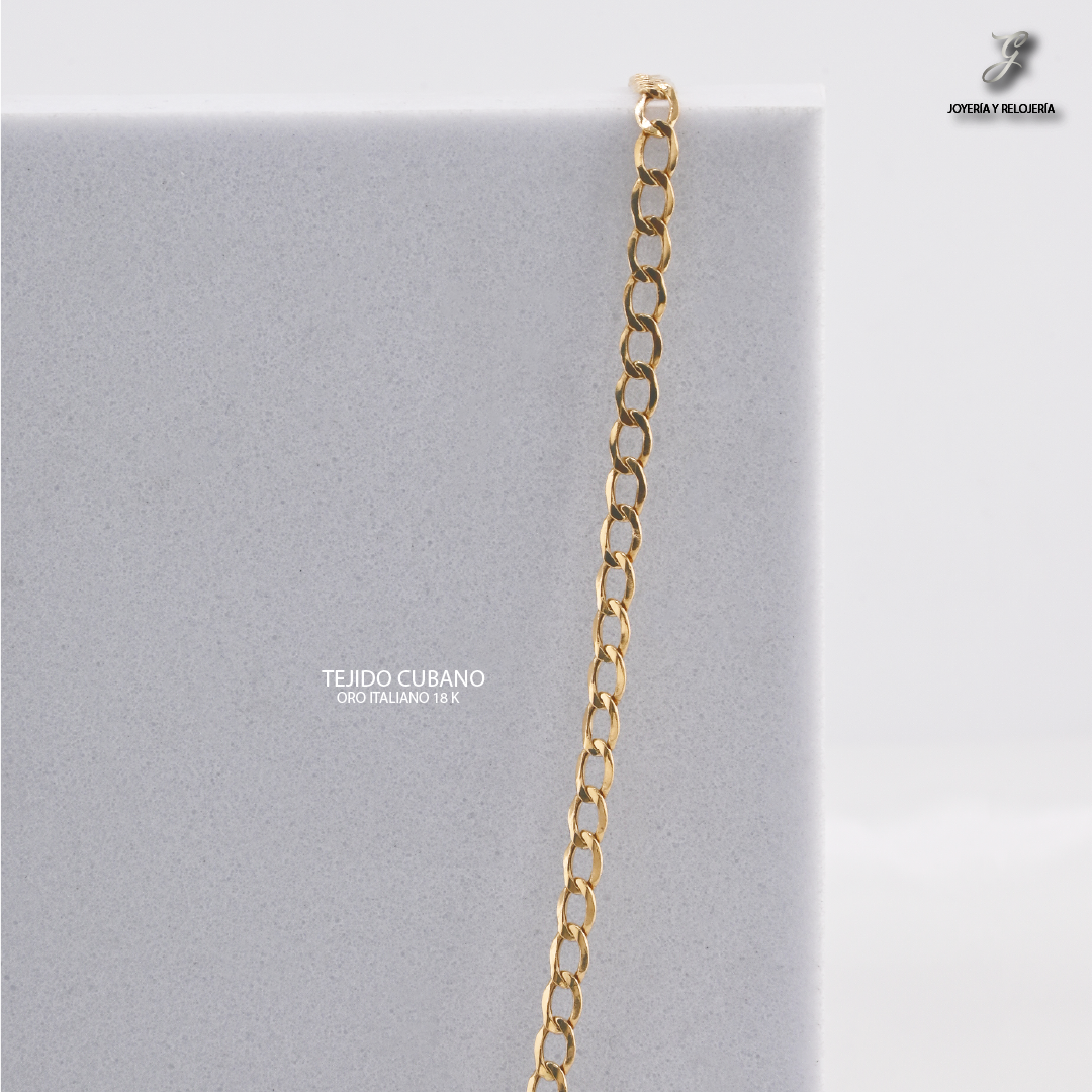 Una pieza con carácter, nuestra CADENA TEJIDO CUBANO PLANA es una versión moderna y sutil de un diseño icónico, elaborada en auténtico Oro Italiano de 18 Kilates.