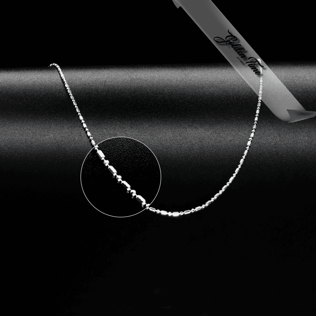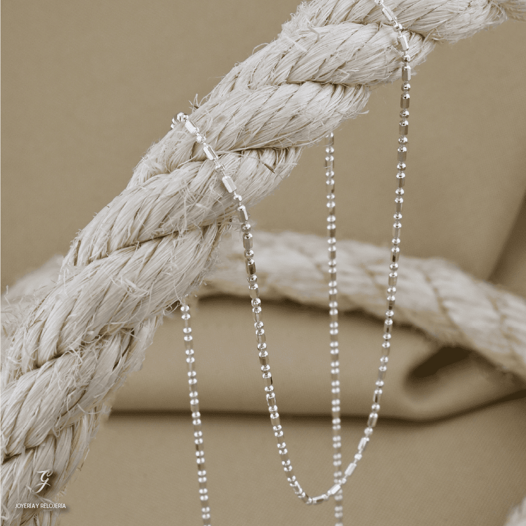 Con un acabado pulido que resalta el brillo natural de la plata, esta cadena es una pieza destacada por sí sola o ideal para complementar un look urbano, elegante o vanguardista.