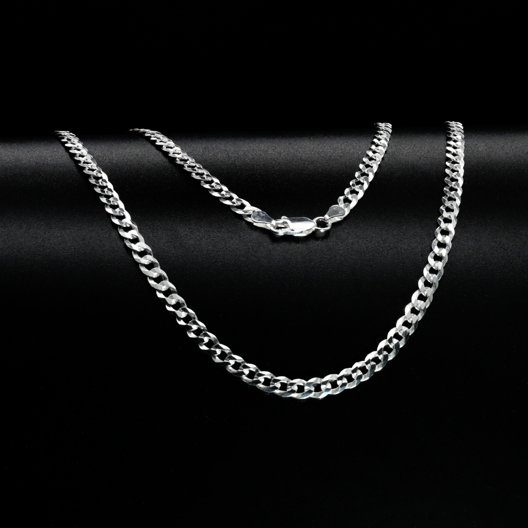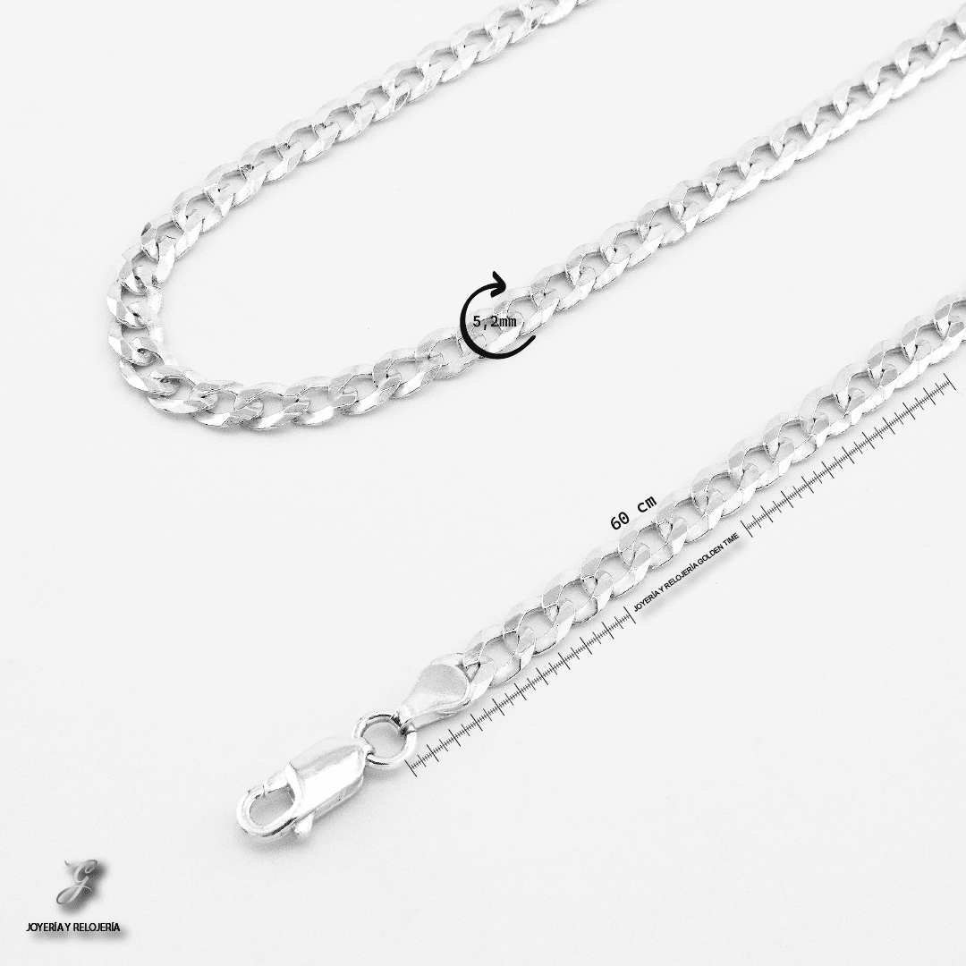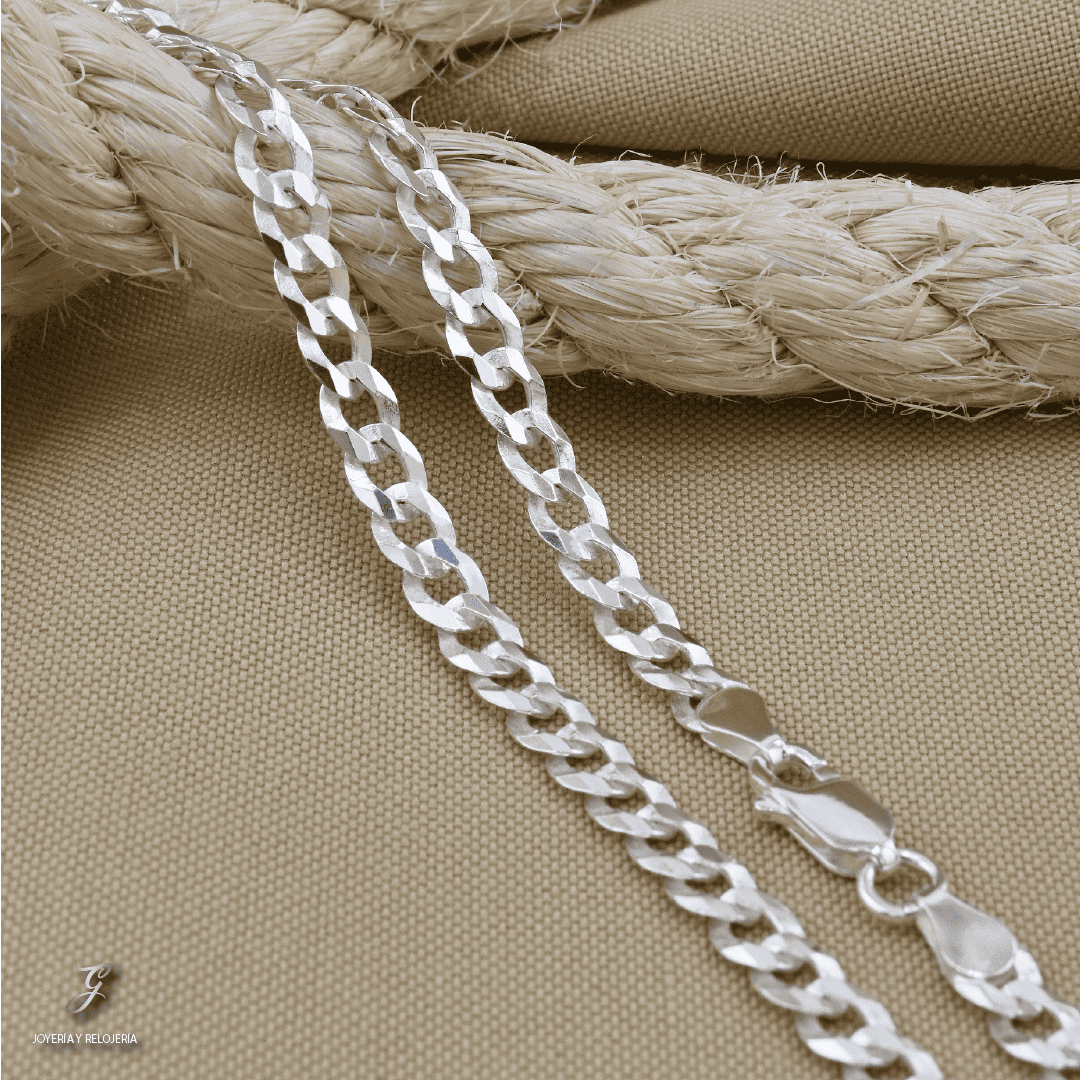 Cadena elaborada en plata italiana 925, compuesta por un 92.5% de plata pura, reconocida por su brillo, calidad y resistencia. El tejido cubana, también conocido como "Cuban link" o "Miami cuban", presenta eslabones gruesos, aplanados y entrelazados de forma compacta, formando una estructura sólida, simétrica y altamente pulida. Este diseño destaca por su estilo audaz y elegante, convirtiéndola en una pieza protagonista ideal para quienes buscan una cadena con presencia, ya sea sola o con colgante. Aporta un toque urbano y sofisticado, muy popular en la moda contemporánea.