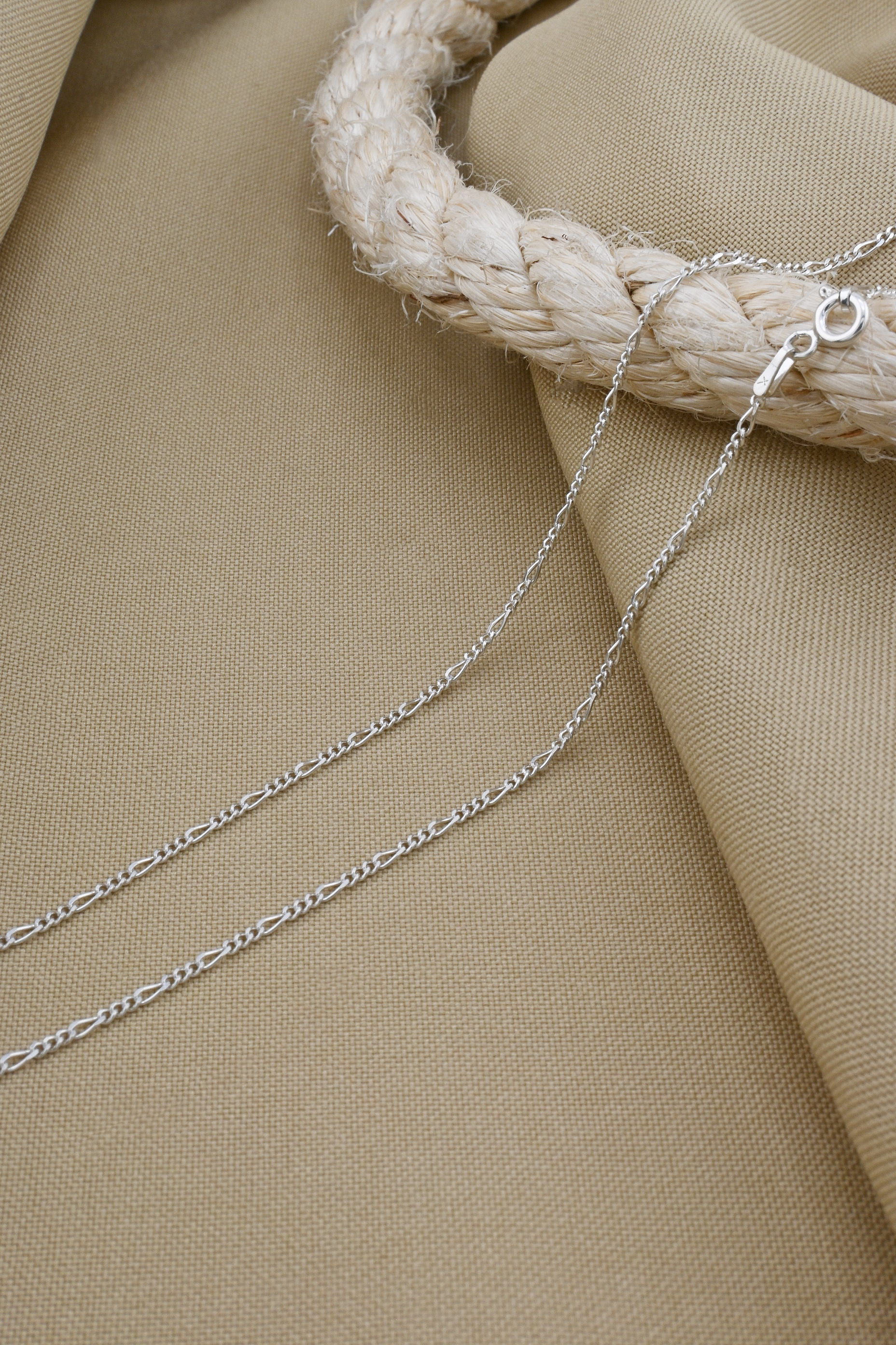 Clásica y atemporal, la cadena de tejido Fígaro es un diseño icónico dentro de la joyería fina. Esta pieza está elaborada en plata italiana 925, garantizando una alta pureza (92.5% de plata) y un acabado brillante y duradero.