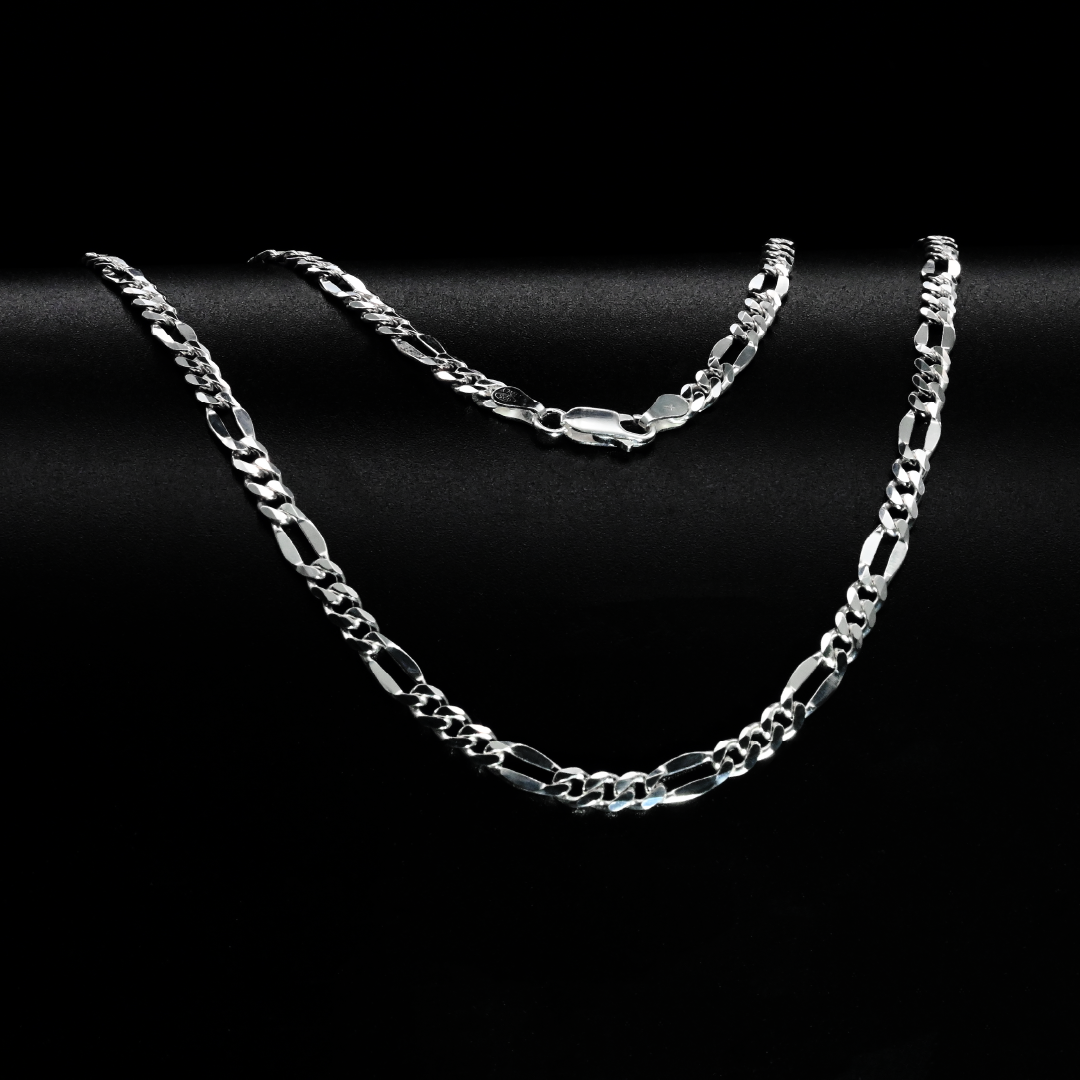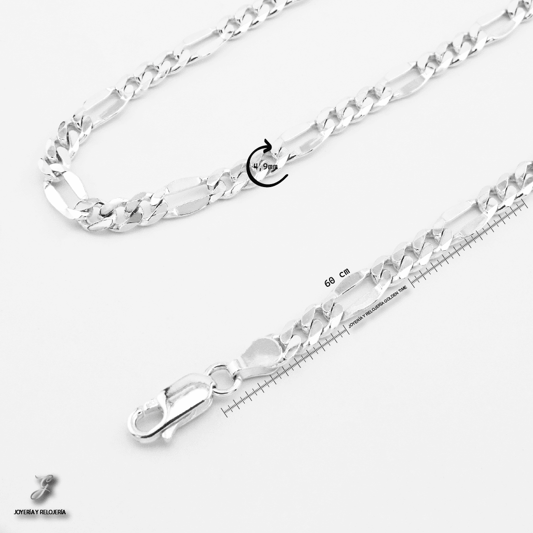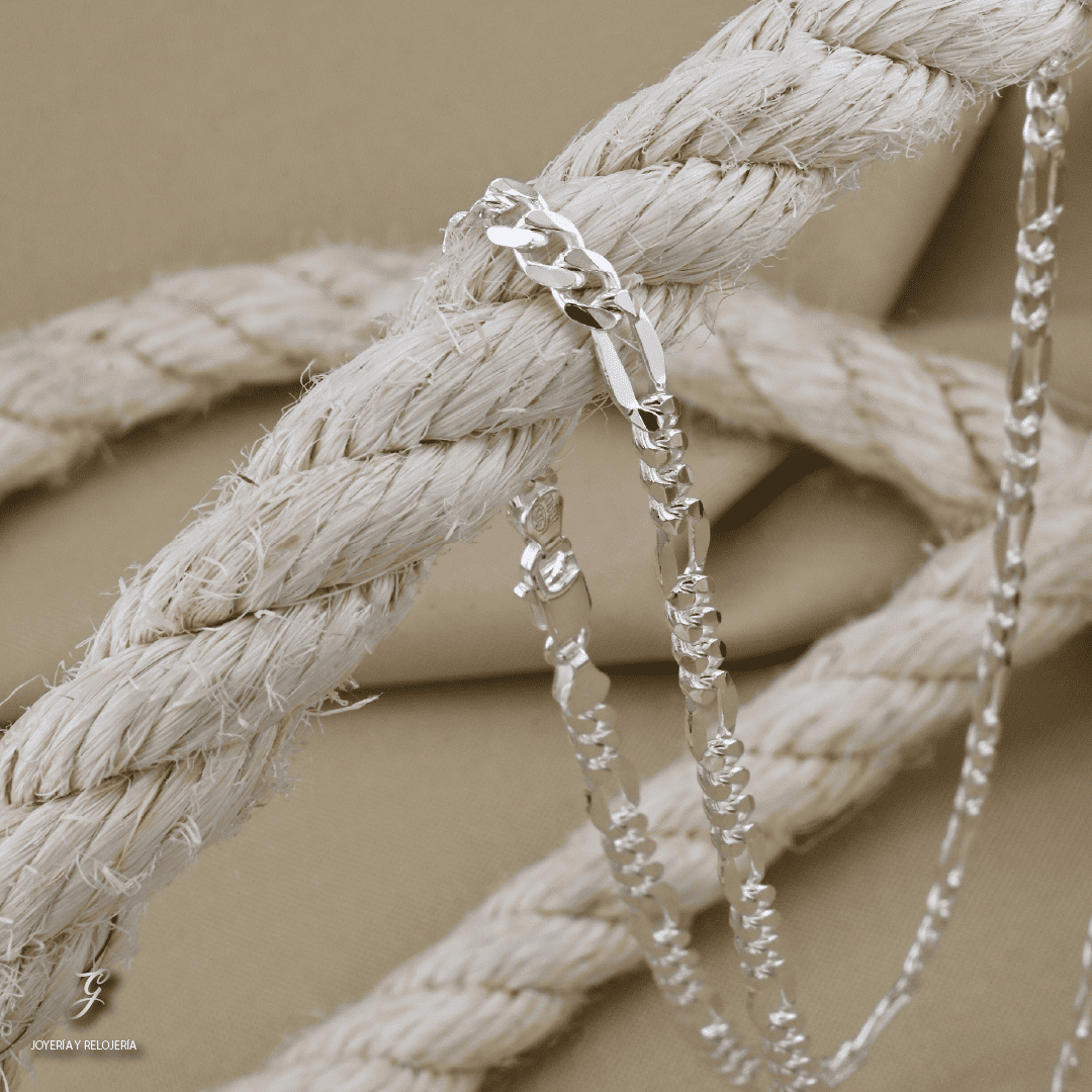 Cadena elaborada en plata italiana 925, compuesta por un 92.5% de plata pura, reconocida por su durabilidad, calidad y brillo excepcional. El tejido Cartier, también conocido como "figaro largo", se caracteriza por una secuencia repetitiva de un eslabón largo seguido de varios eslabones cortos (comúnmente tres), formando un patrón elegante y distintivo. Este diseño, clásico y atemporal, combina estilo y resistencia, ideal tanto para hombres como para mujeres. Puede llevarse sola como pieza principal o acompañada de un dije, adaptándose a looks formales o casuales con un toque de sofisticación.