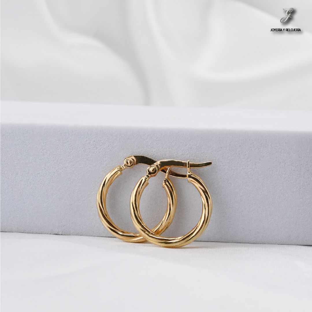 Estas Candongas Melcocha 17.2 mm son la versión perfecta para quienes buscan un aro con un poco más de presencia sin sacrificar la comodidad. Su distintivo diseño trenzado en oro amarillo captura la luz con cada movimiento, creando un brillo único que realza cualquier look. Son un accesorio versátil y elegante que se convertirá en un básico de tu joyero.