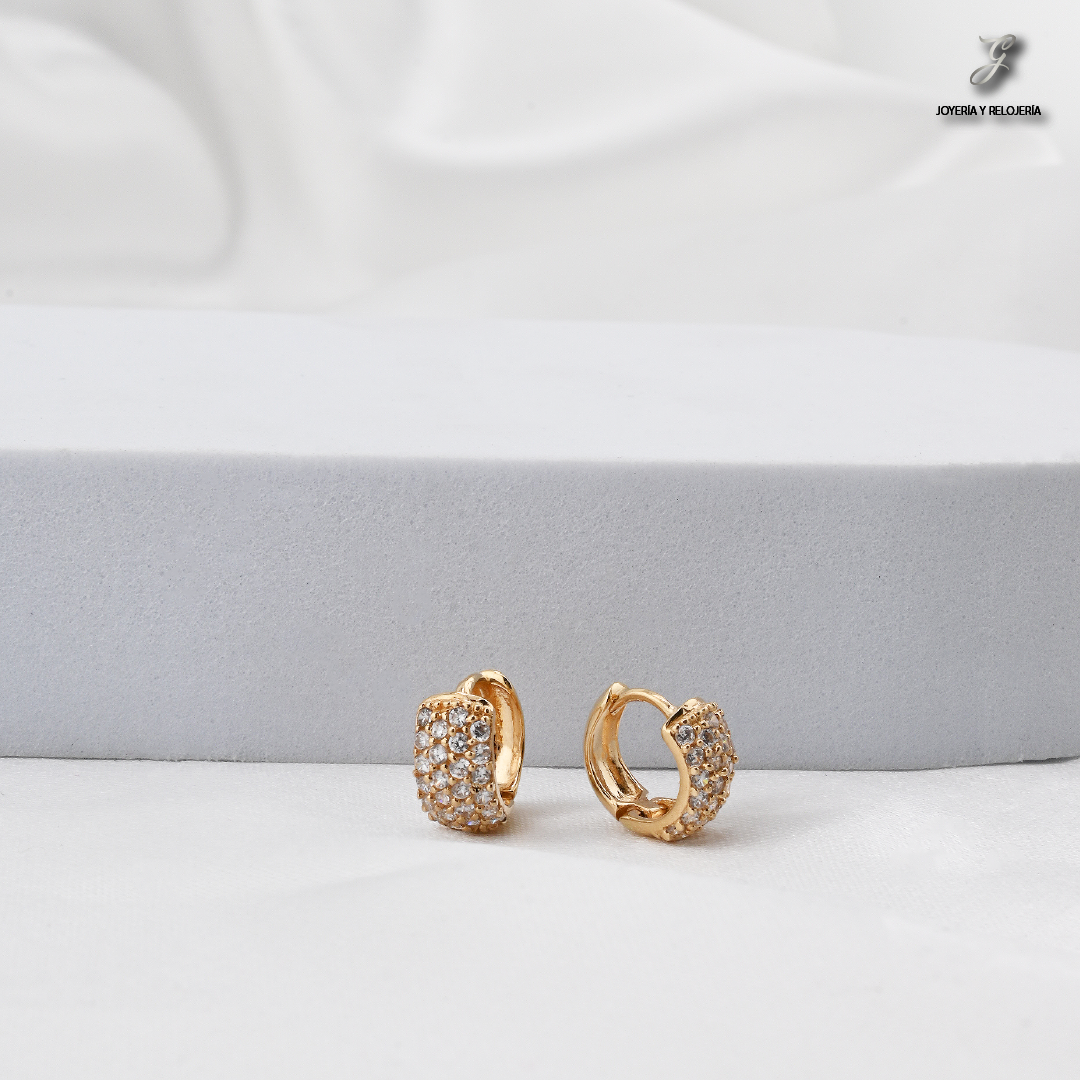¡Un destello de lujo y elegancia en cada movimiento! ✨ Estas Candongas de Brillo son la pieza perfecta para añadir un toque deslumbrante a tu look. Finamente elaboradas en oro, cuentan con una superficie cubierta de incrustaciones de circones blancos que brillan intensamente, dándoles una apariencia glamurosa y sofisticada. Su diseño de aro pequeño y grueso las hace versátiles para usar tanto en el día a día como en ocasiones especiales.