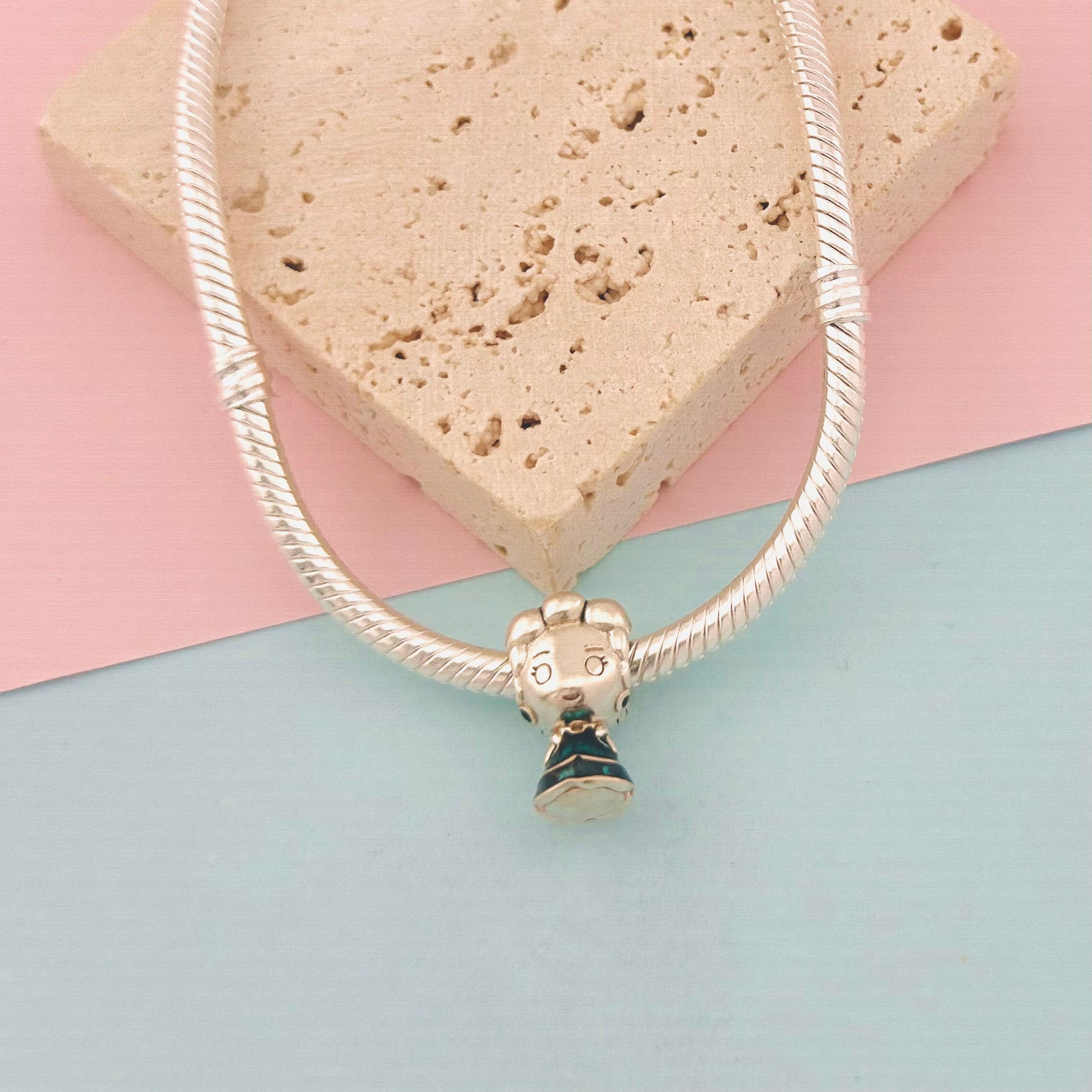 ¡Cree en la magia con nuestro Charm Cenicienta! Este dije captura la esencia de la princesa con un elegante peinado y su icónico vestido de gala de color azul claro, adornado con un esmalte brillante. Es el accesorio perfecto para quienes se inspiran en su historia de bondad, perseverancia y el poder de los sueños que se hacen realidad. Un recordatorio de que un solo par de zapatillas puede cambiar tu vida.