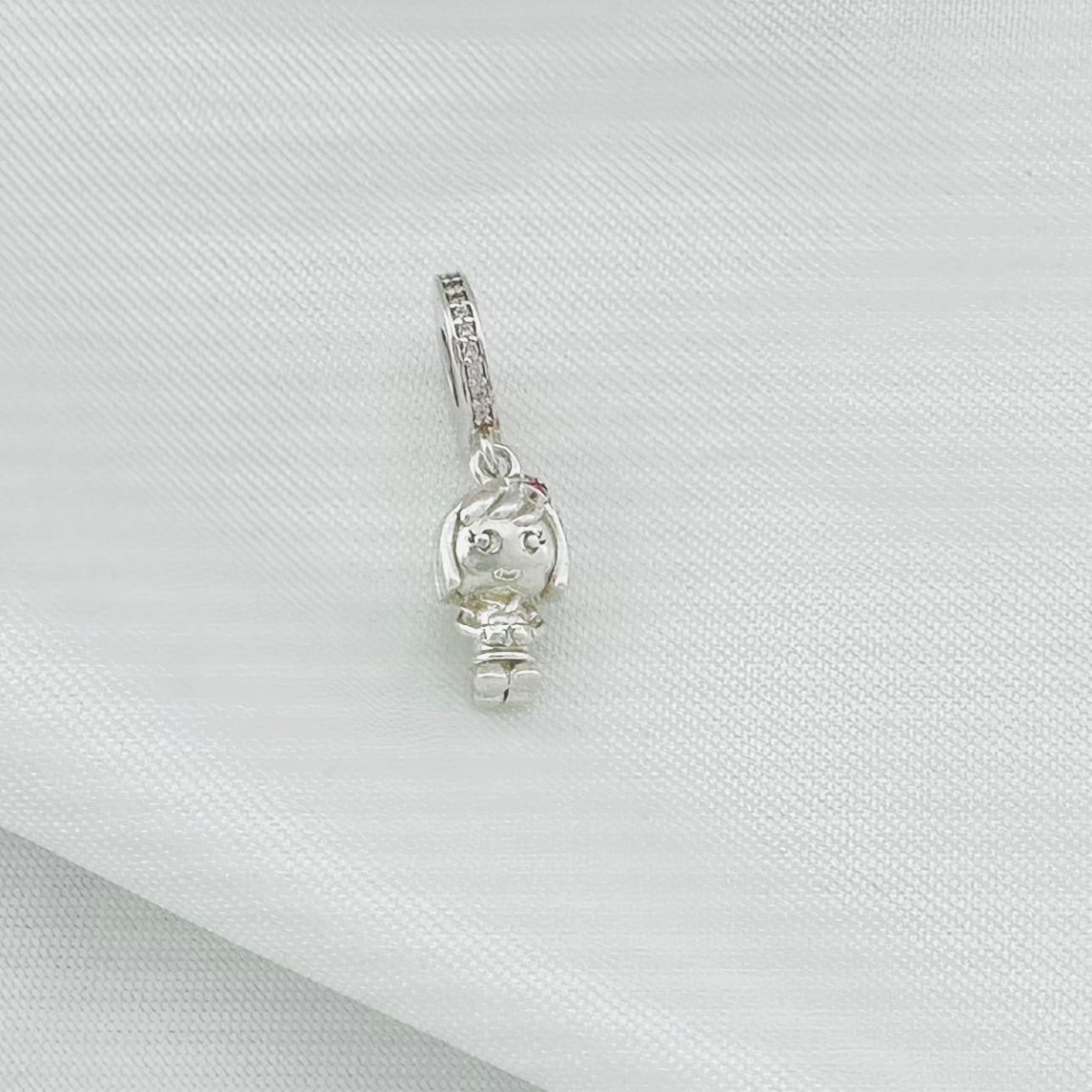 Captura la dulzura y la inocencia con nuestro Charm Dangle Niña de las Flores, un accesorio lleno de encanto y significado. Este charm colgante, elaborado en plata ley 925 italiana, presenta una figura de una niña con un delicado moño rosa y un pequeño ramo de flores. El aro del charm está adornado con brillantes piedras de circonia cúbica en un tono rosa, dándole un toque de brillo y feminidad.