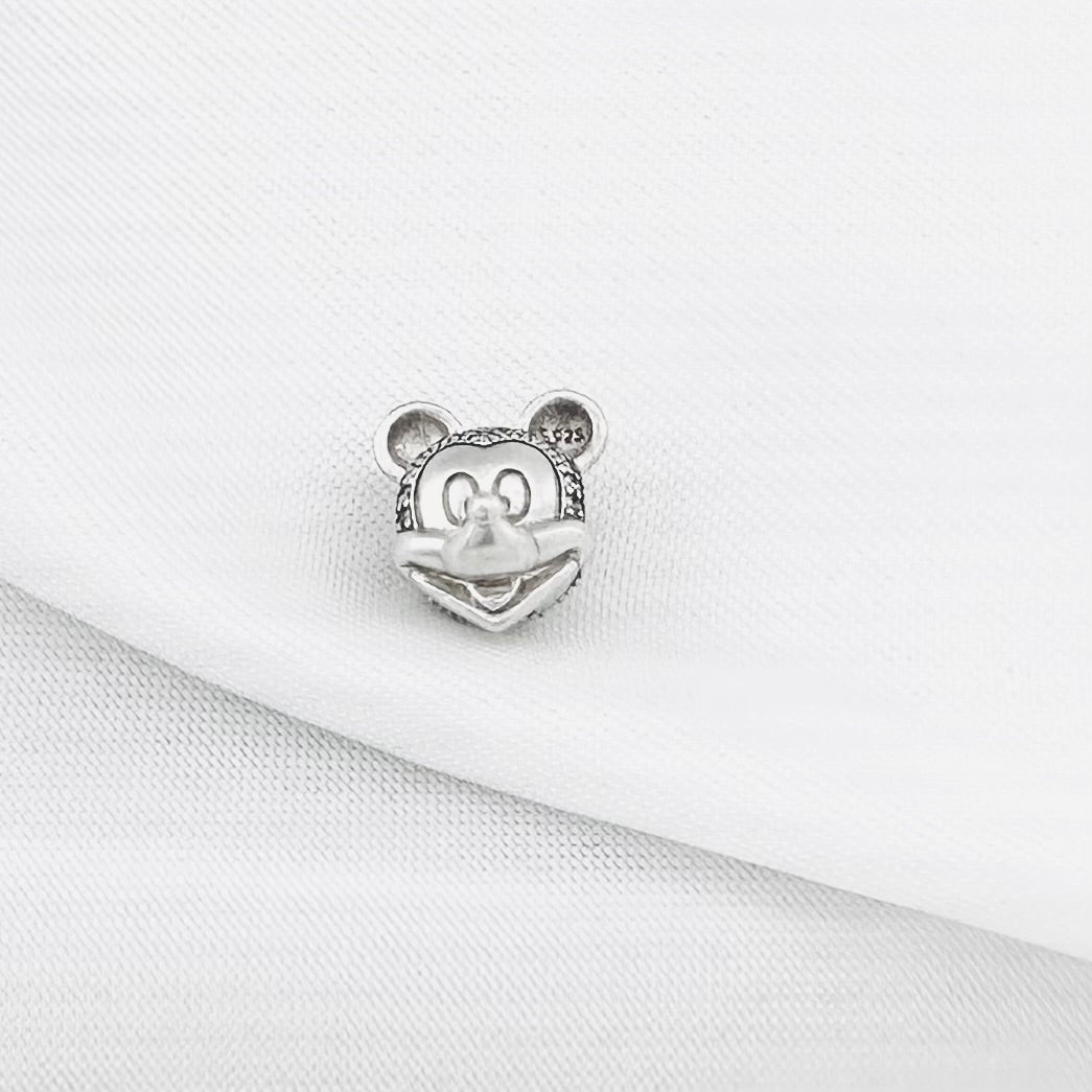 ¡Añade un toque de magia y diversión a tu pulsera con nuestro Charm Clip Mickey Mouse Brillante! Este encantador charm tipo clip, elaborado en plata, presenta la icónica cabeza de Mickey Mouse con un contorno y orejas lisas y brillantes, mientras que el resto de su rostro está adornado con deslumbrantes circonias cúbicas. Su función es sujetar los charms en su lugar y evitar que se salgan cuando abres el cierre de tu pulsera.