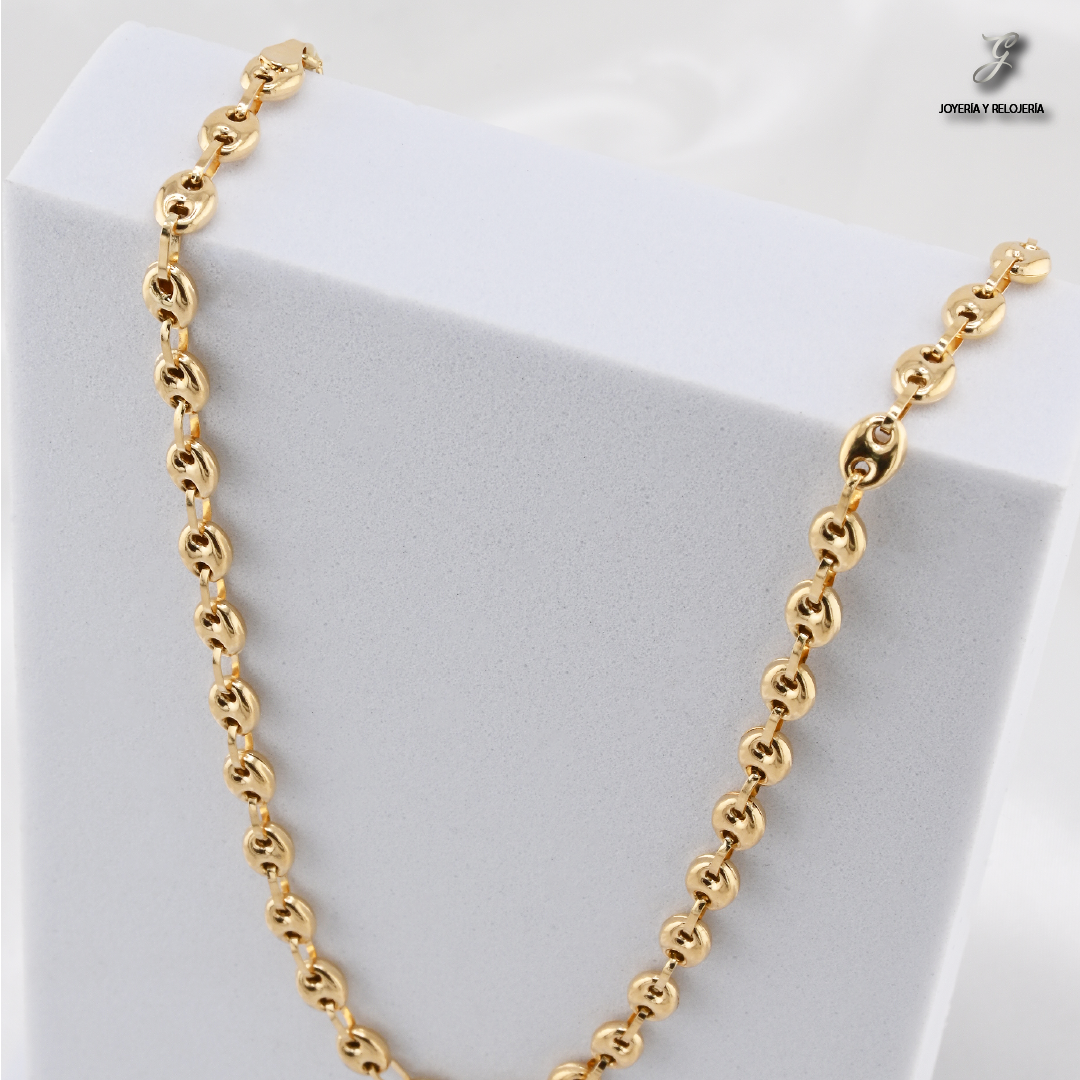 ¡Un clásico que nunca pasa de moda y proyecta un estilo inconfundible! ✨ La Cadena Elegante Gucci es una pieza sólida y versátil, ideal para quienes buscan una joya robusta y con carácter. Su distintivo tejido de eslabones ovalados con una barra central, conocido como estilo Gucci, la hace un accesorio único y atemporal. Esta cadena puede ser usada sola para un look minimalista o combinada con dijes, adaptándose a cualquier ocasión.