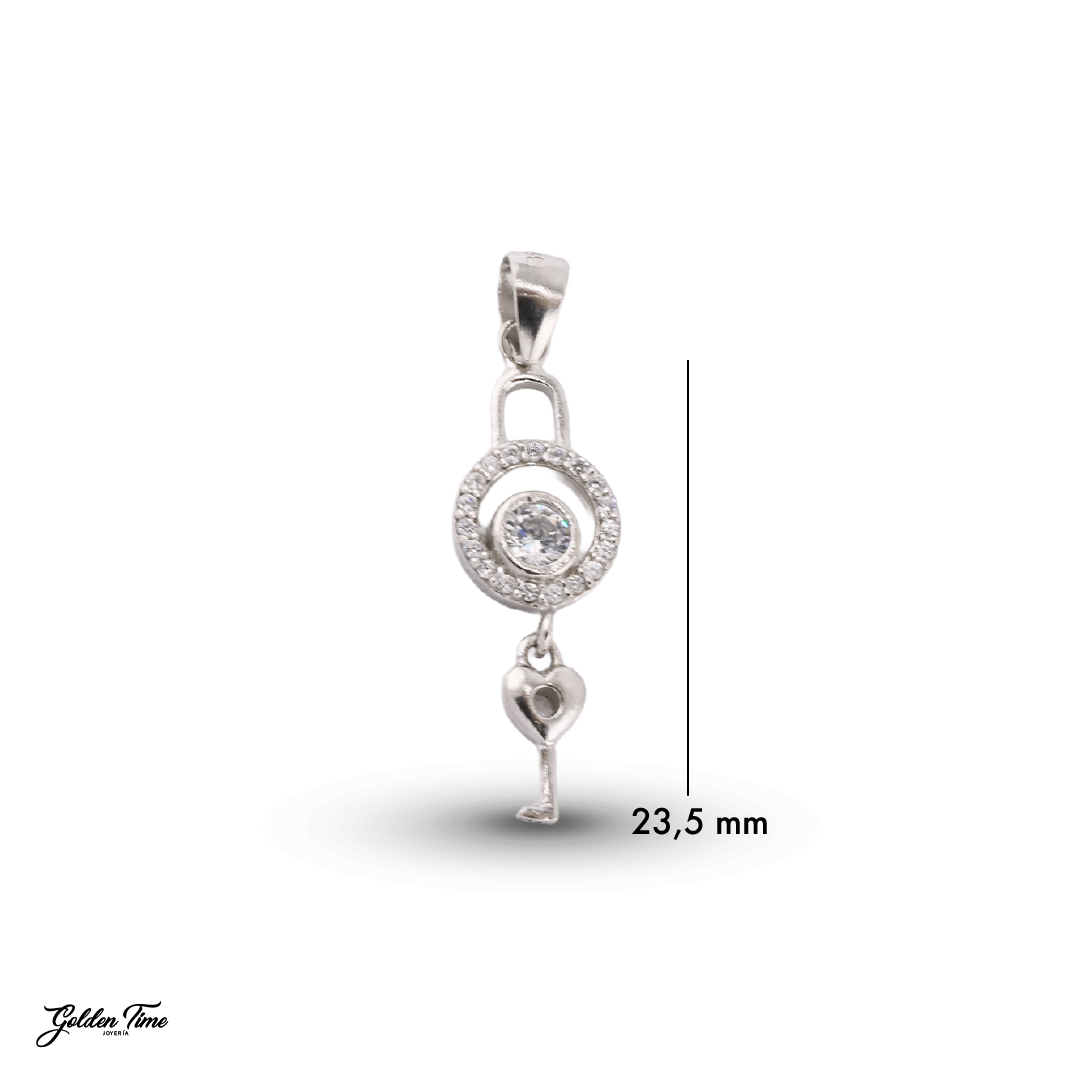 Elaborado en Plata Ley 925, la joya destaca por su exquisito micro-engaste de Circones Suizos que recubren el aro del candado, aportando un brillo sofisticado que resalta sobre el metal pulido. Es el accesorio ideal para quienes buscan una pieza con un simbolismo profundo y un diseño contemporáneo que no pasa desapercibido.