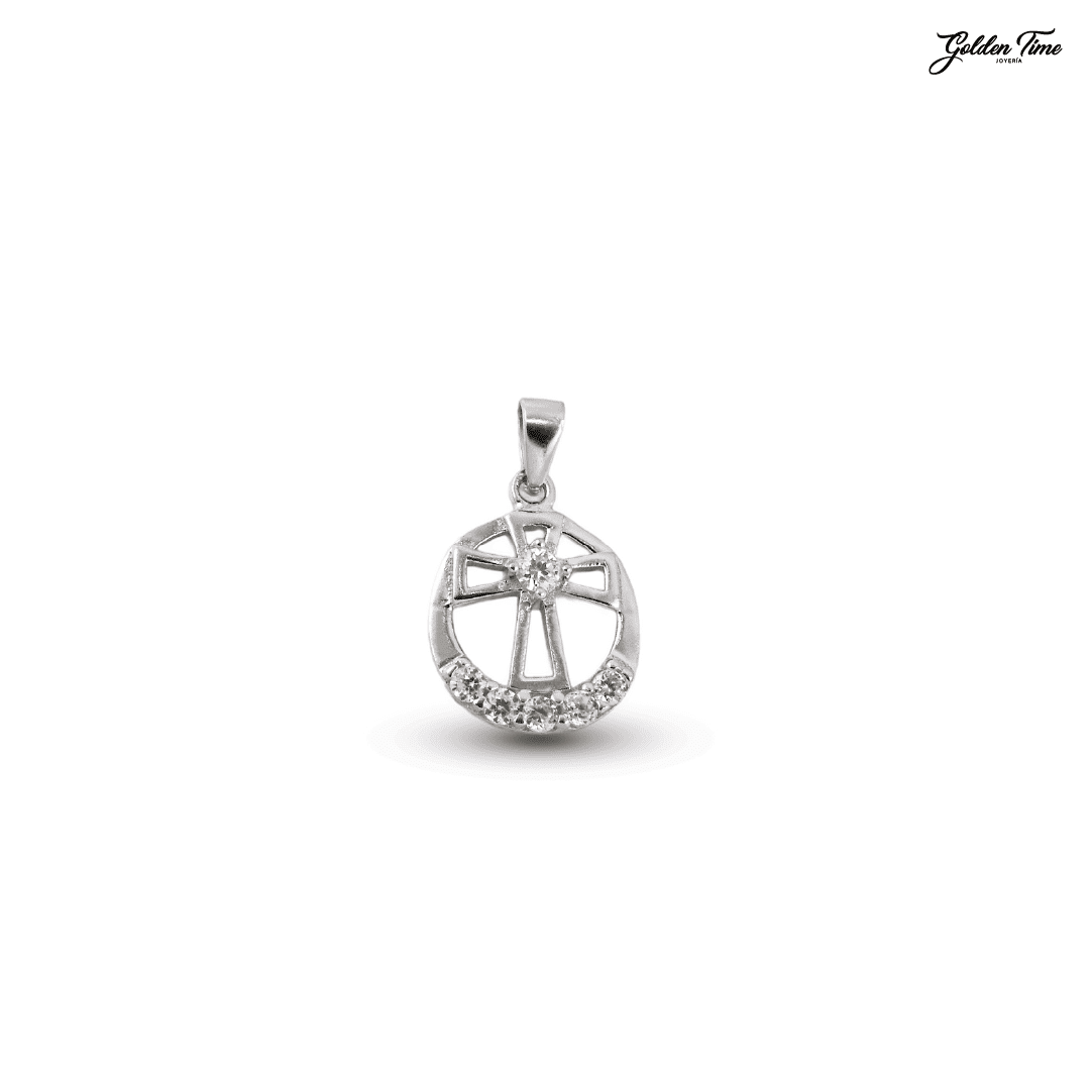 🛠️ Diseño: Medalla circular calada con cruz central y pedrería fina.