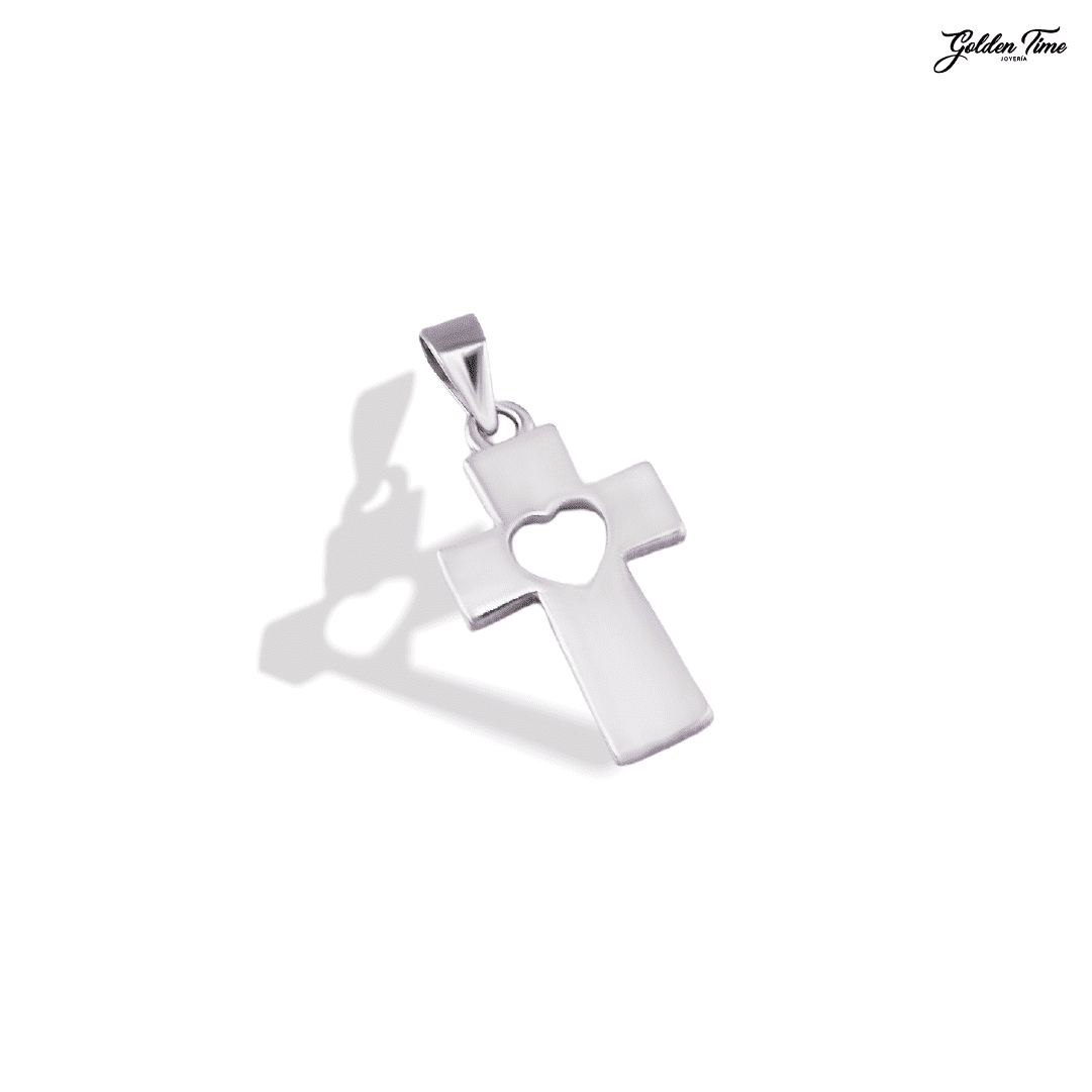 🛠️ Diseño: Cruz de líneas rectas con corazón central calado y pasacadena sólido.