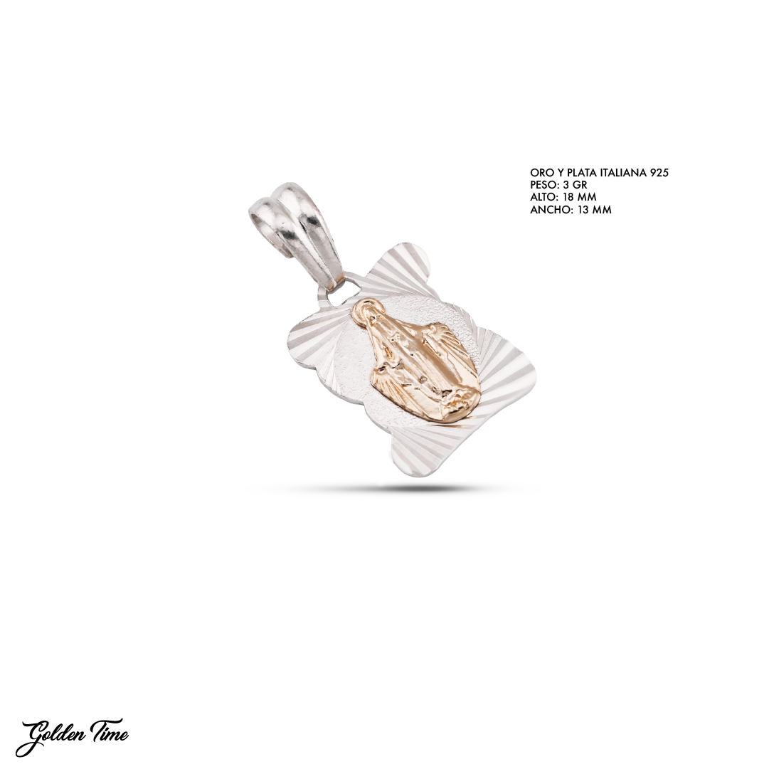 dije milagrosa rayo, lámina de oro 18k, oro y plata italiana 925, medalla milagrosa, dije espiritual, joyería devocional, dije rectangular, estilo urbano espiritual