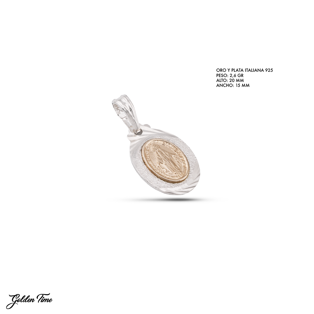 dije milagrosa áurea, lámina de oro 18k, oro y plata italiana 925, medalla milagrosa, dije espiritual, joyería devocional, dije ovalado, estilo urbano espiritual
