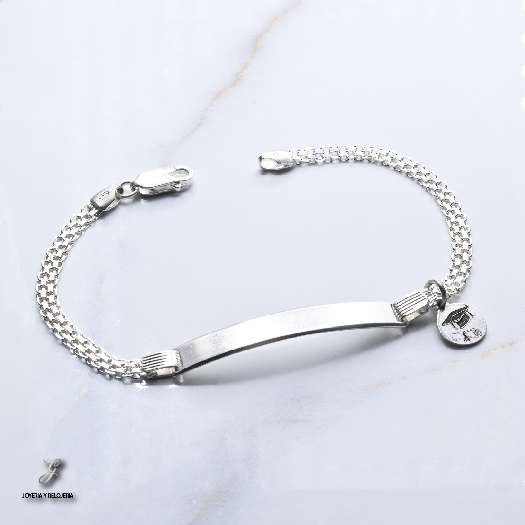 ¡Celebra tu éxito con una joya de diseño único! ✨ Esta esclava unisex está elaborada en auténtica Plata Ley 925 italiana con un sofisticado tejido Bismark, conocido por su estilo robusto y elegante. Su placa lisa y su diseño atemporal la hacen ideal para conmemorar tu graduación o cualquier logro importante.