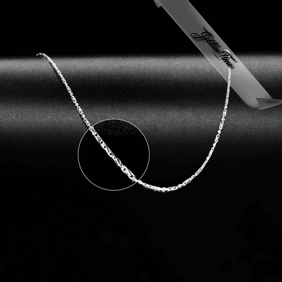 Es un tipo de cadena de joyería elaborada en plata italiana 925, compuesta por pequeños discos planos o cuentas cilíndricas delgadas (conocidas como heshe beads o heishi beads) alineados de forma continua, que crean una apariencia texturizada, flexible y elegante. El término "Snap" generalmente se refiere a un tipo de cierre de presión o mecanismo de enganche que facilita su colocación.