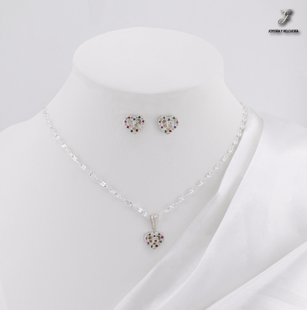 ¡Una explosión de color para celebrar la vida! 🌈 Este alegre TRÍO CORAZÓN ARCOÍRIS XV 10 es un conjunto vibrante y juvenil, perfecto para conmemorar la edad de los quince. El set incluye un dije y un par de topos (aretes) a juego.