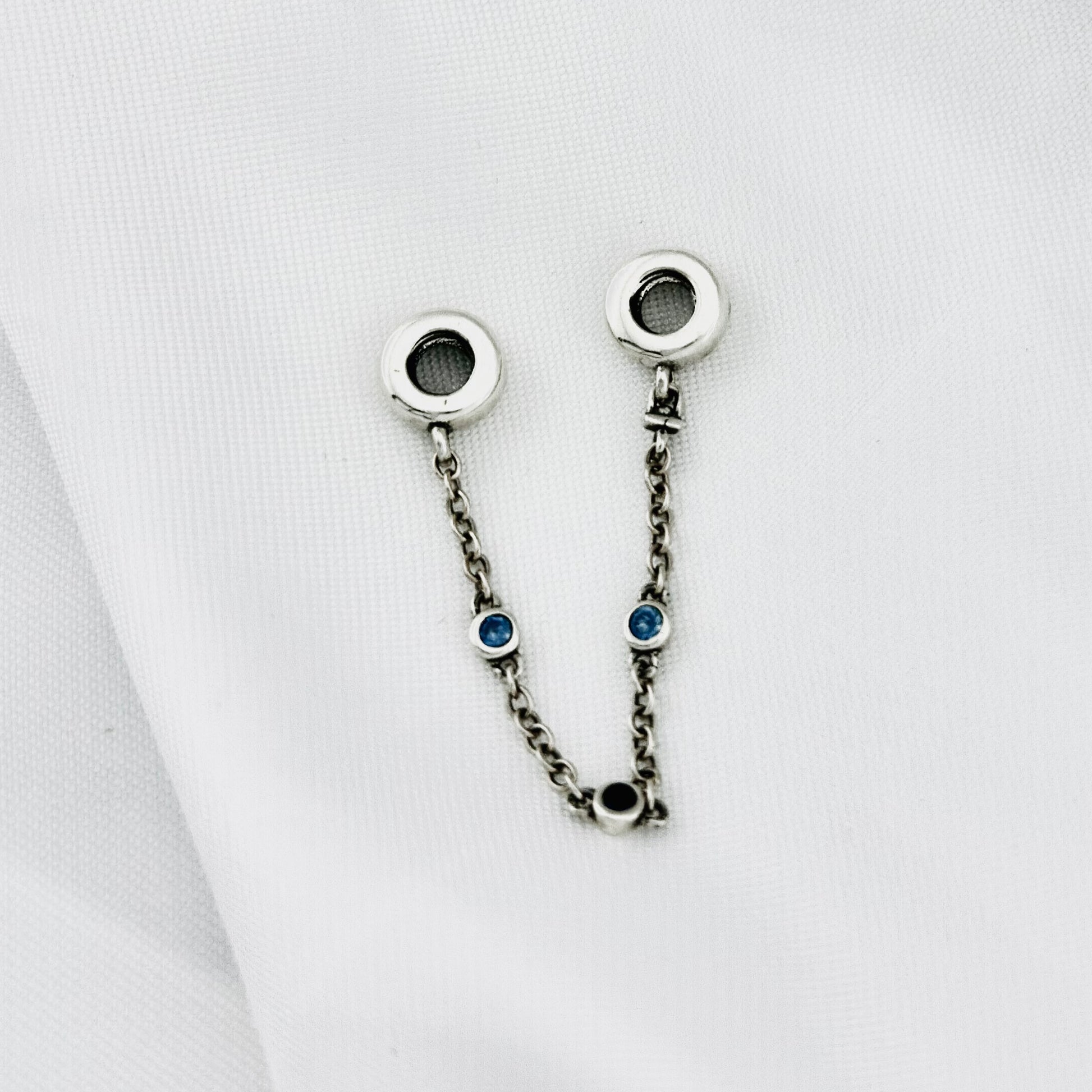 Añade un toque de color y seguridad a tu pulsera con nuestra Cadena de Seguridad Brillantes Azules. Este accesorio de plata presenta dos topes para charms unidos por una delicada cadena. Cada tope está adornado con una brillante circonia cúbica azul en diferentes tonalidades, añadiendo un toque de elegancia y color mientras aseguras que tus charms permanezcan en su lugar.