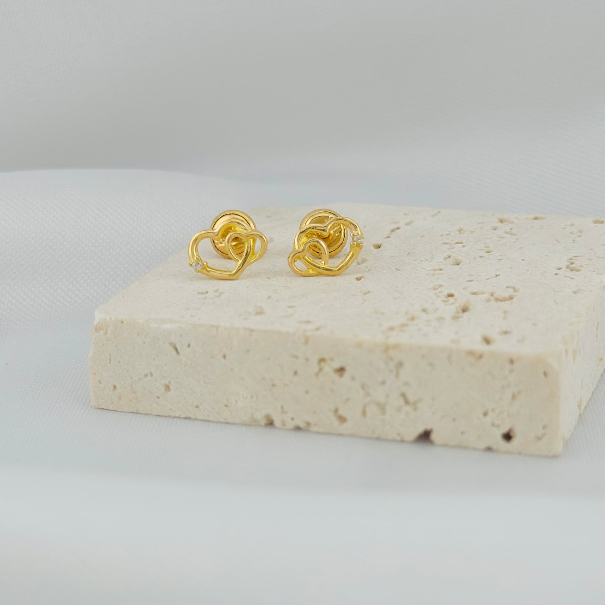 ¡Celebra el amor y la conexión eterna con nuestros Topos Doble Corazón! 💖 Elaborados en oro 18K, Ley 730, estos topos presentan un delicado diseño con dos corazones entrelazados que simbolizan la unión y un pequeño circon blanco que añade un brillo especial. Son la joya ideal para un estilo sofisticado y un regalo perfecto para esa persona especial. ✨