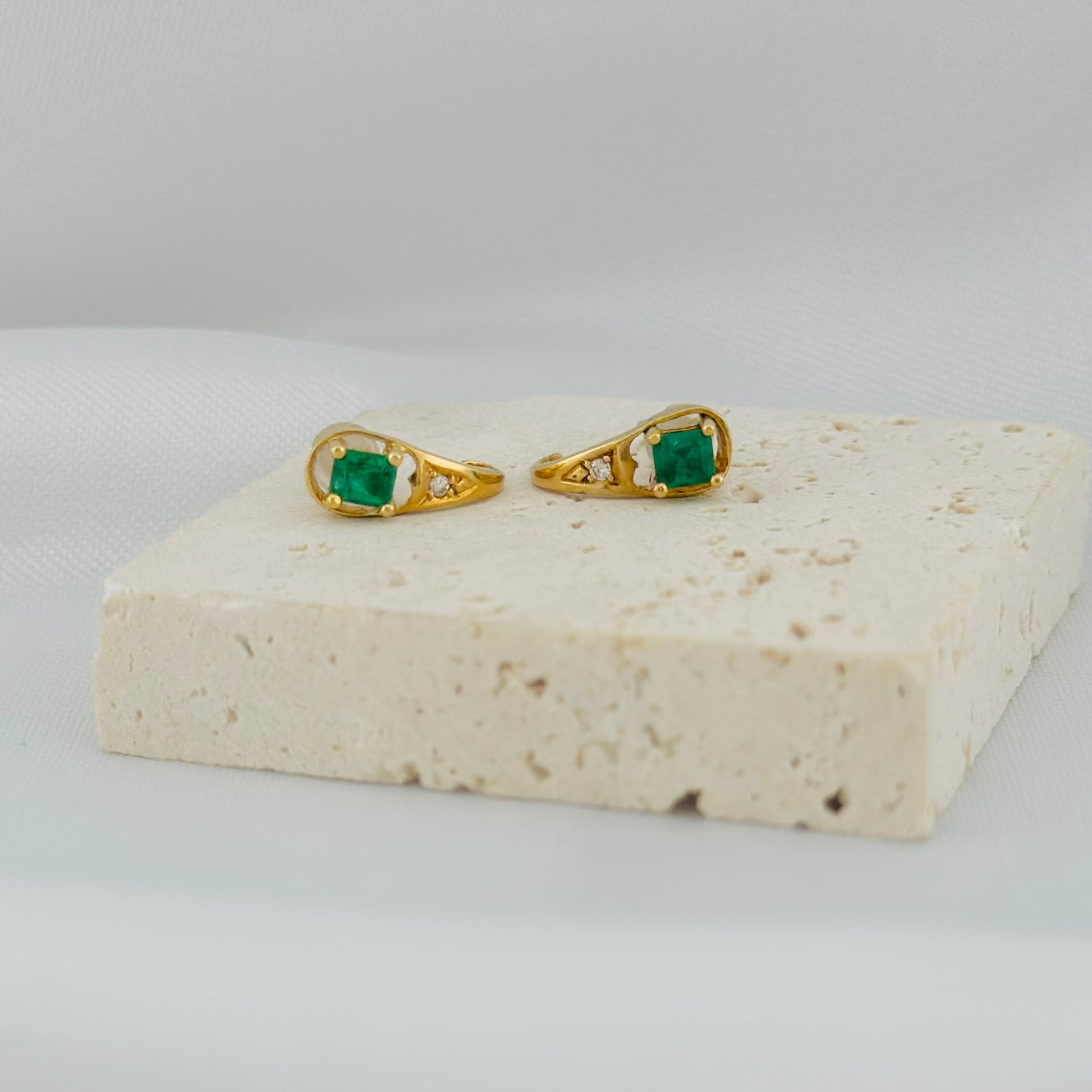 ¡La máxima expresión de sofisticación y brillo! ✨ Los Topos Esmeralda Isabella son la pieza perfecta para quienes buscan una joya de alta gama que combine la belleza clásica de la esmeralda con el resplandor eterno del diamante. Elaborados en oro 18K, Ley 730, cada topo presenta una esmeralda genuina de talla cuadrada de 3.4mm, acentuada por un brillante diamante redondo de 1mm. Su diseño elegante y atemporal los convierte en el accesorio ideal para ocasiones especiales y un regalo inolvidable. 💎